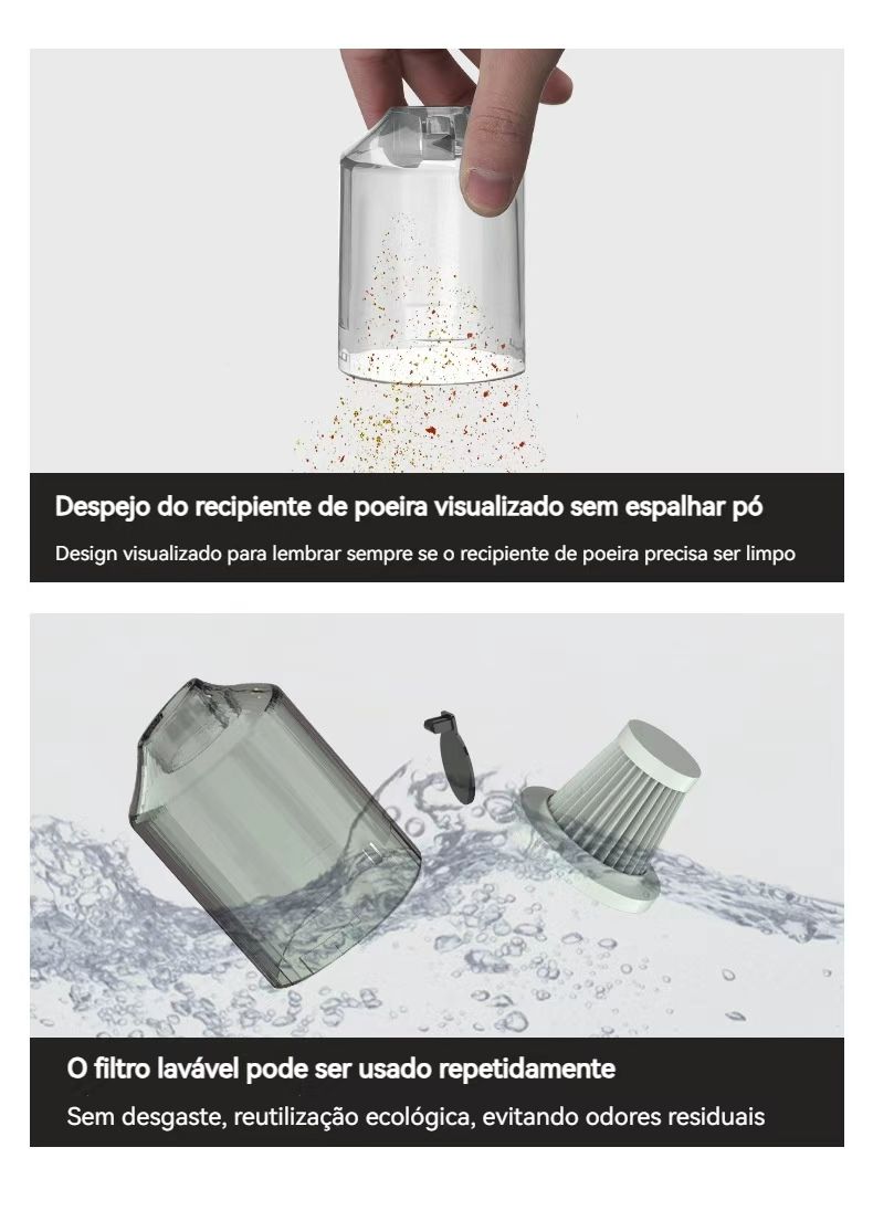✅ Potência 9000Pa:Sucção forte para limpar pó, pedaços de comida e sujeira em carros, tapetes, sofás e cantos estreitos