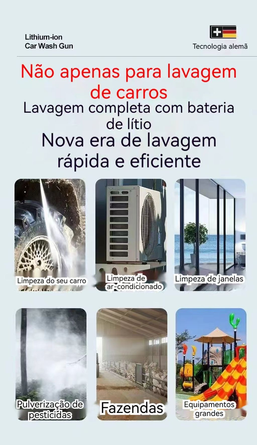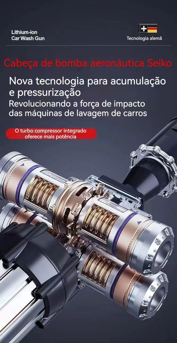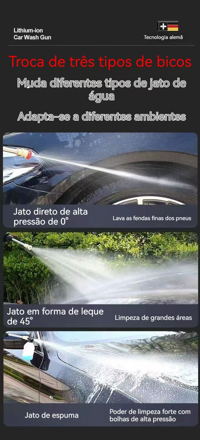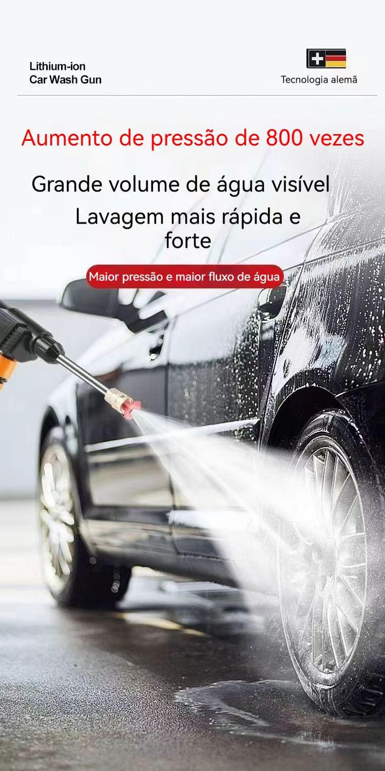 Lavador de carros sem fio a alta pressão importado da Alemanha, portátil para uso doméstico, pistola de água potente com bateria de lítio recarregável para lavar carros